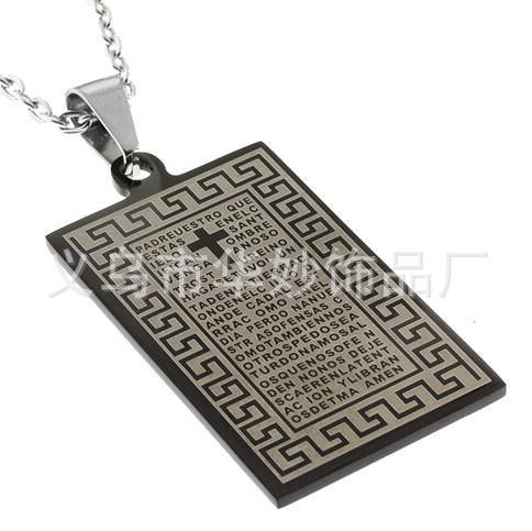 男士黑色圣经十字架吊牌 不锈钢吊坠 项坠项链批发