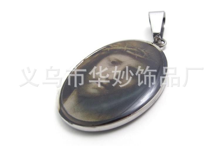 厂家直销不锈钢耶稣像水晶滴胶项链 教用品项坠吊坠批发
