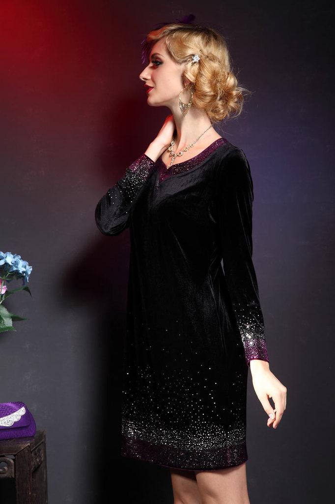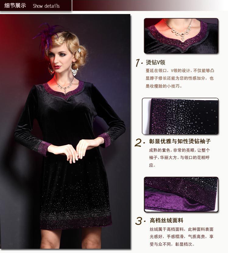 2220#新款烫钻民族显瘦韩版长袖连衣裙 秋冬新款打底女装裙子