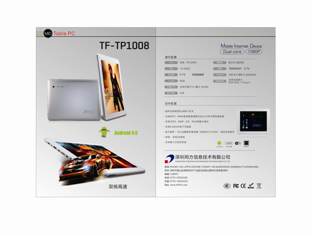 代理商清华同方9.7寸安卓平板电脑双核RK3066 1GB 16GB