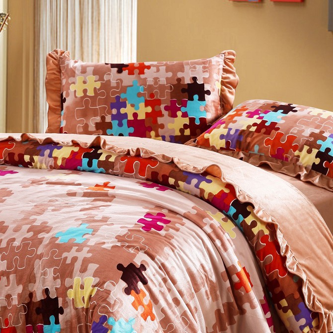 厂家直销 韩式天鹅绒活性印花四件套 加厚保暖