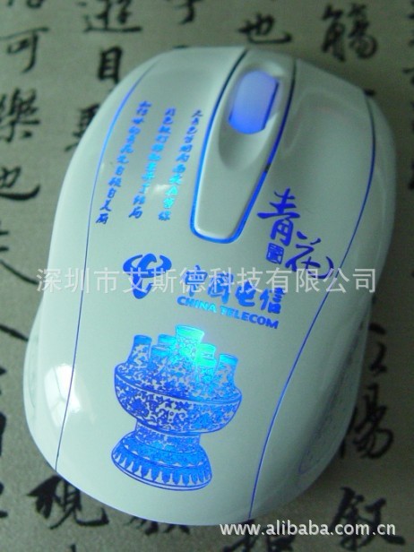 青花瓷镭雕鼠标 青花鼠标 透光鼠标 青花透光鼠标 青花无线鼠标