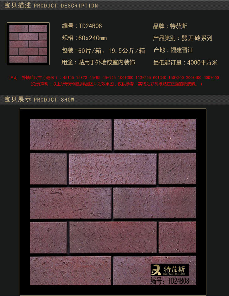 厂家直销 劈开砖 外墙劈开砖 陶土劈开砖 窑变砖