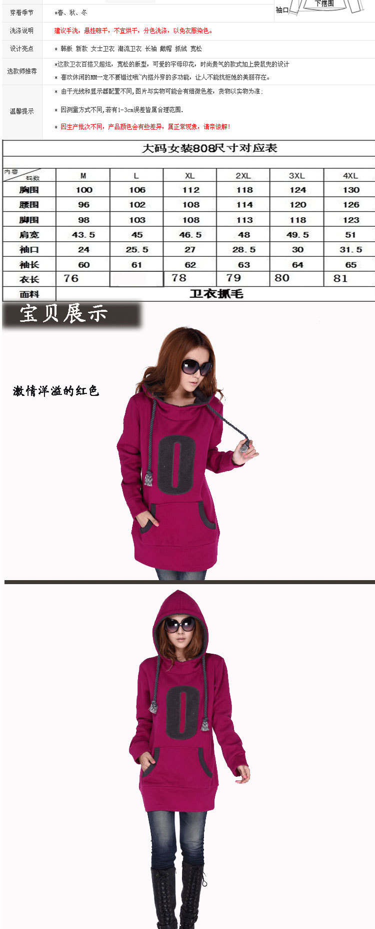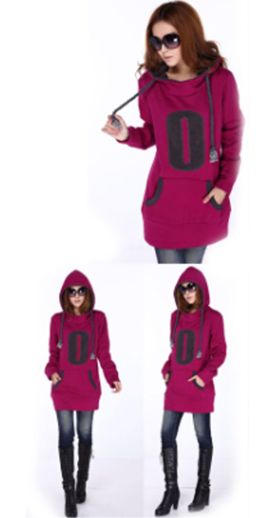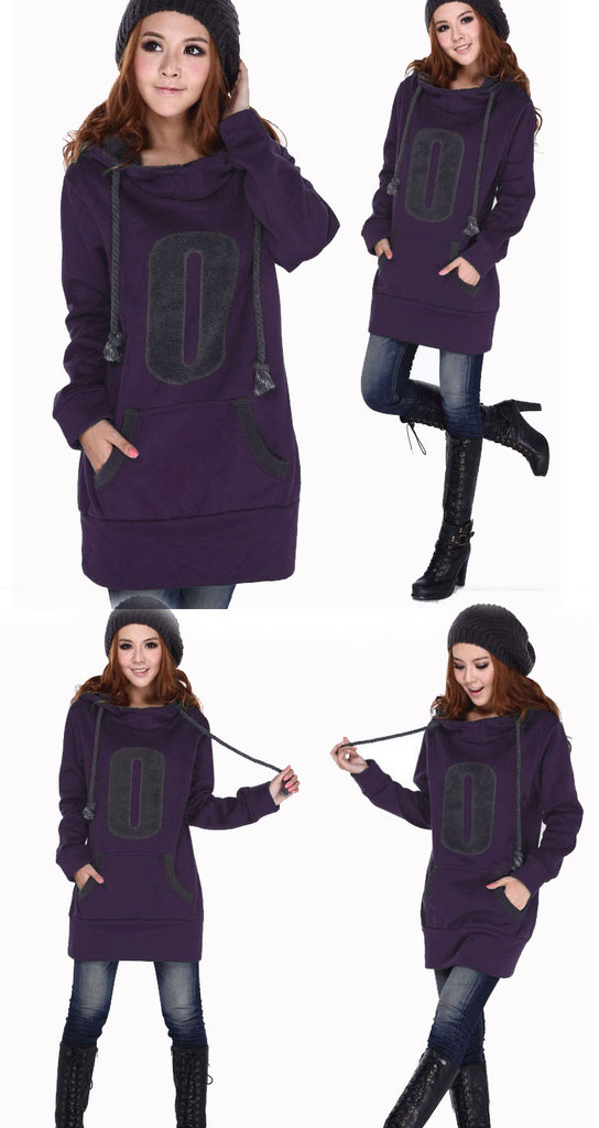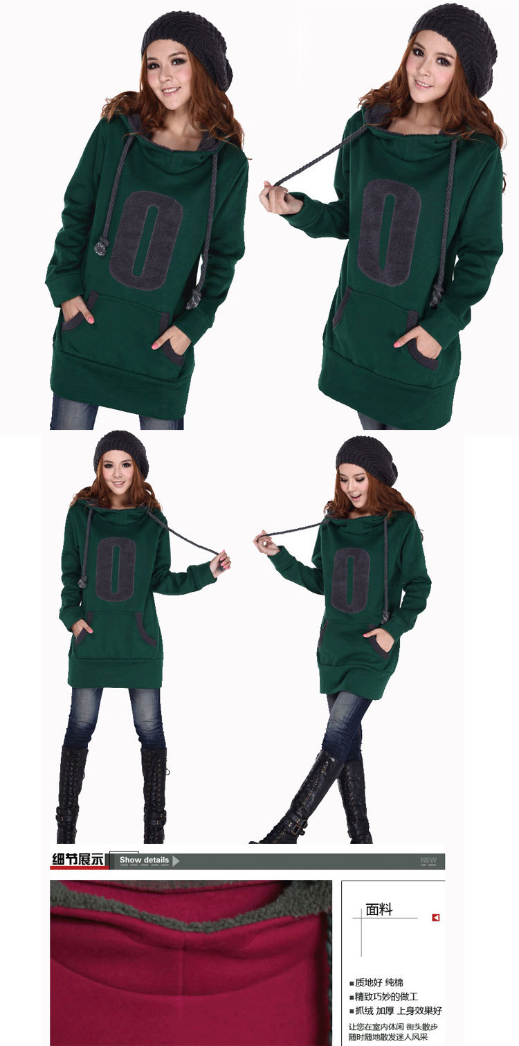 淘宝活动爆款 长款加厚卫衣女款 秋冬装带帽抓绒卫衣10045