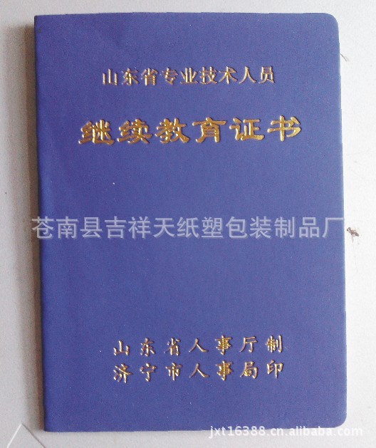 北京签约本厂家荣誉证书资格证书学分证书合格证书亦庄印刷包装厂