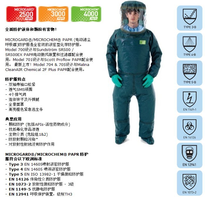 特价供应全密闭的液密型化学防护服MICROCHEM PAPR
