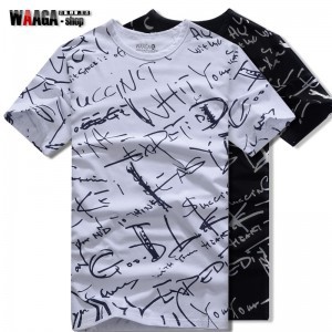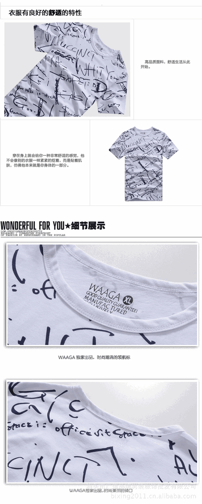 WAAGA\夏季时尚休闲宽松打底衫短袖T恤字母印花DT0353