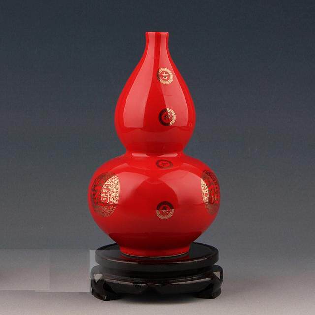 景德镇现代工艺品摆设家居装饰品瓷器中国红喜庆花瓶陶瓷葫芦花瓶