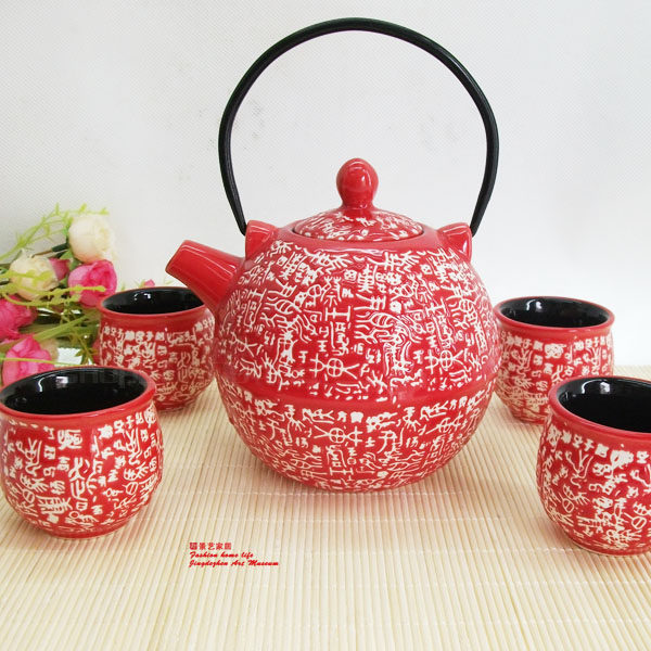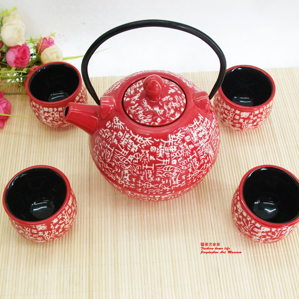 陶瓷茶具中国红百家姓茶具 和风系列五件套工艺茶具套装结婚礼物