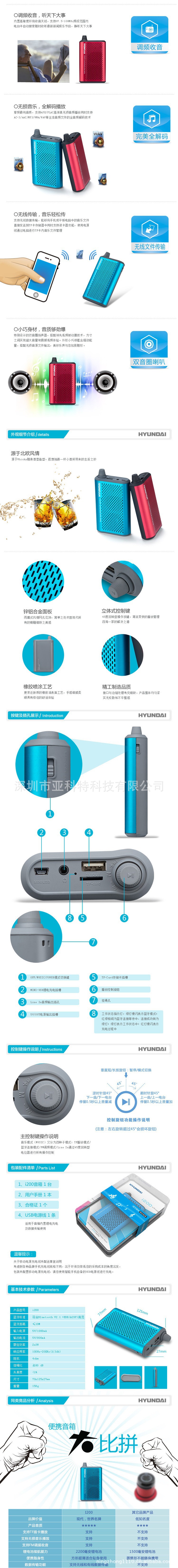 2012韩国现代i200畅销产品 无线蓝牙音响 便携式蓝牙音响