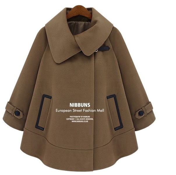 韩版秋冬新款绵羊绒外套大衣 时尚斗篷外套大衣 女款百搭外套大衣