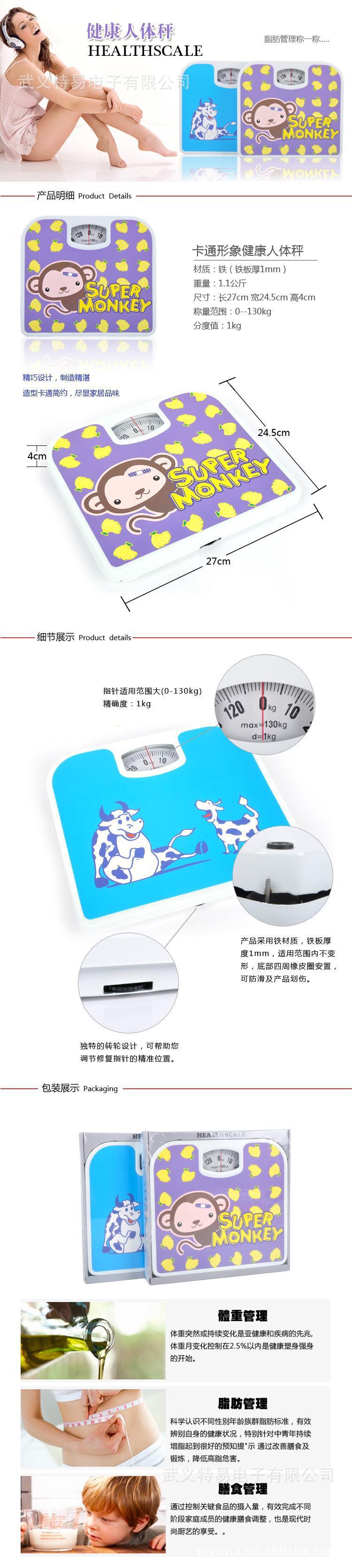 指针式家用健康秤 浴室秤 130kg量程 一件代发 多种精美图案