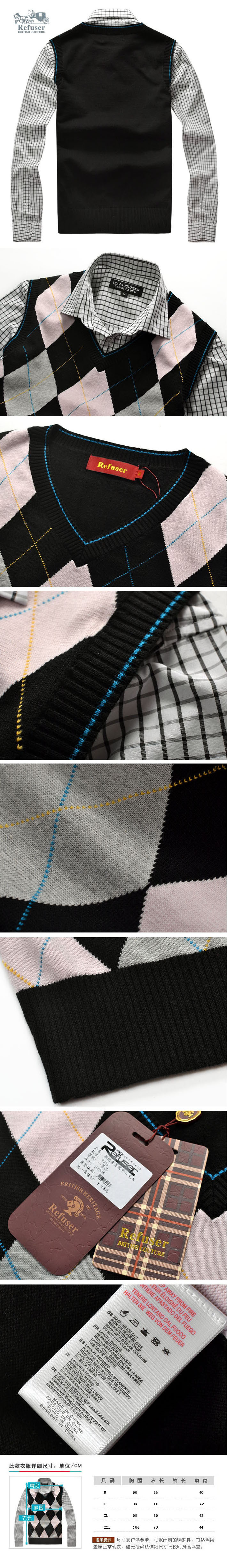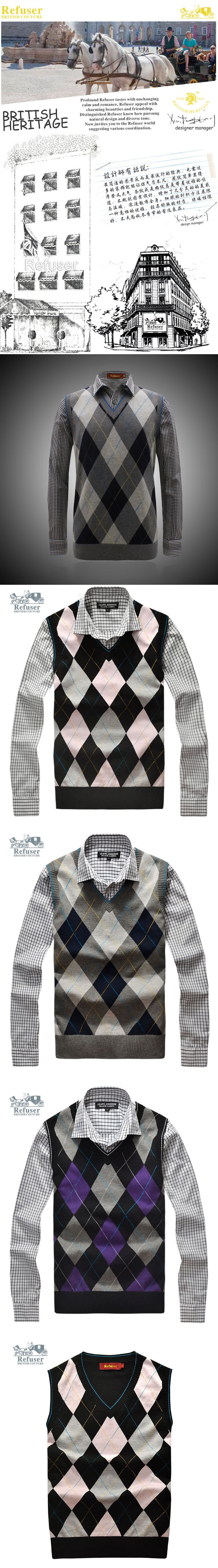 特价 新款男背心 拒绝者套头英伦格子 男士V领 现货批发
