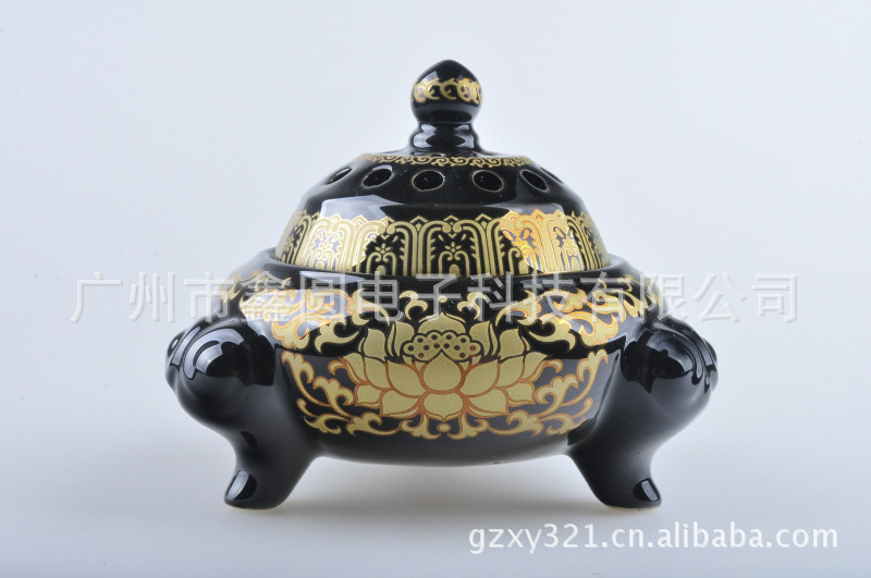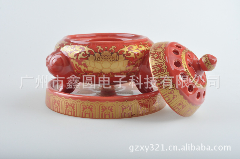 真金莲花,招财进宝有底可调温 防干烧电子香熏炉