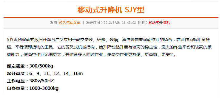 500KG9米/高空作业平台,液压升降机,液压升降平台