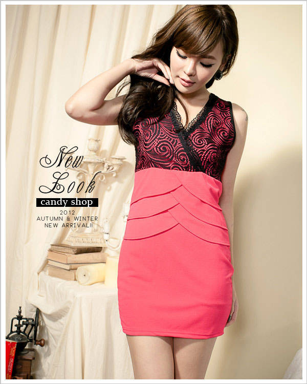 韩版女装春夏新款2013流行时尚潮流甜美蕾丝V领夏装修身连衣裙