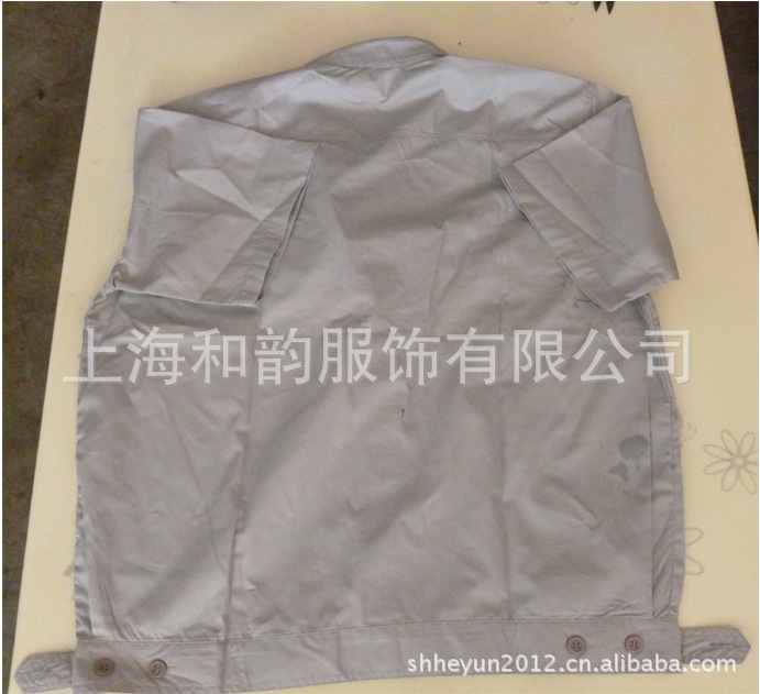上海供应定做夏季短袖涤棉工作服 细斜纹 可绣公司LOGO印花