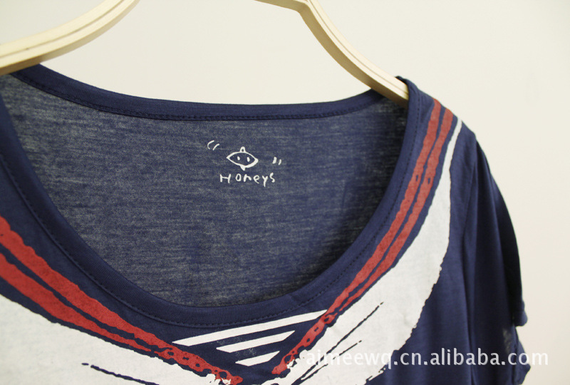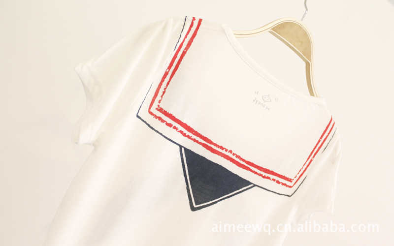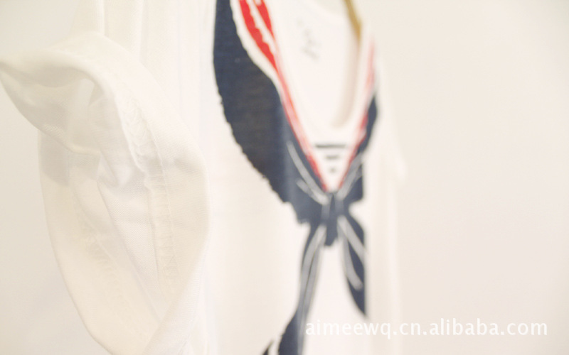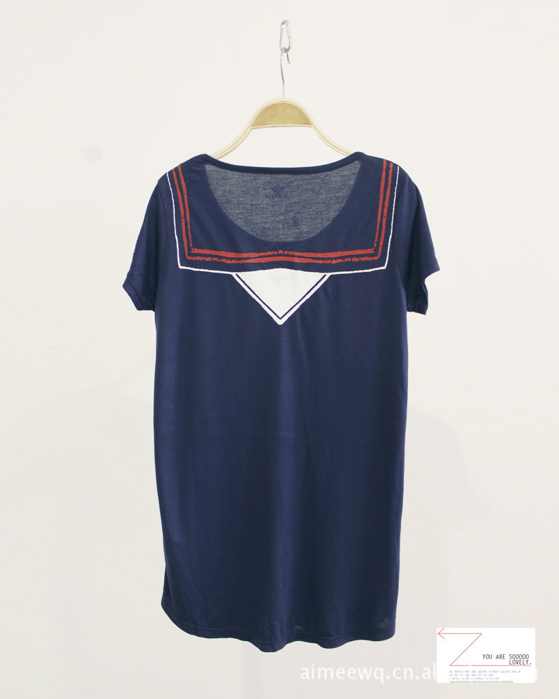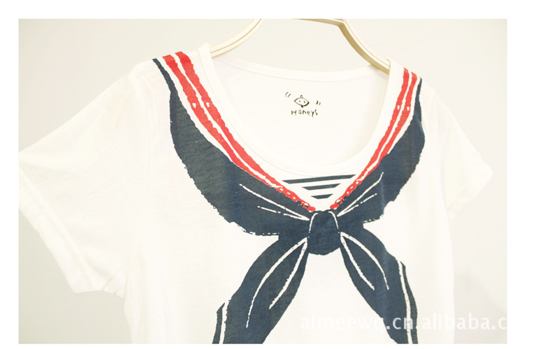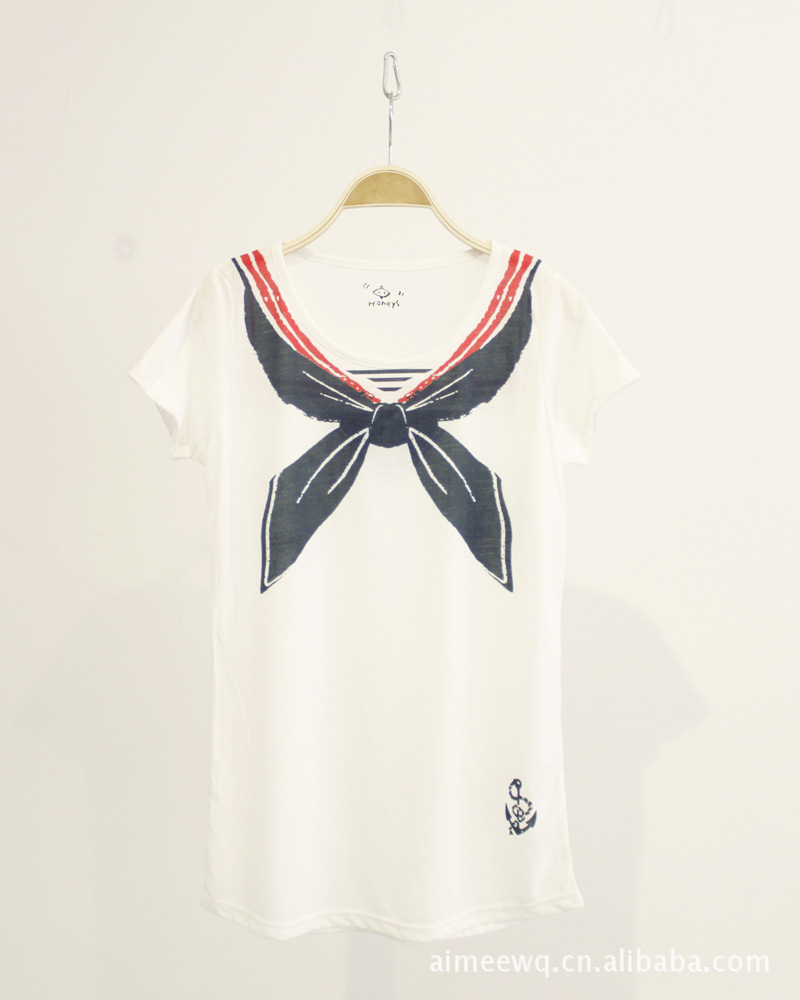 原单新款短袖t恤L089 海军小衫 圆领蝴蝶结印花海军衫海魂衫t恤
