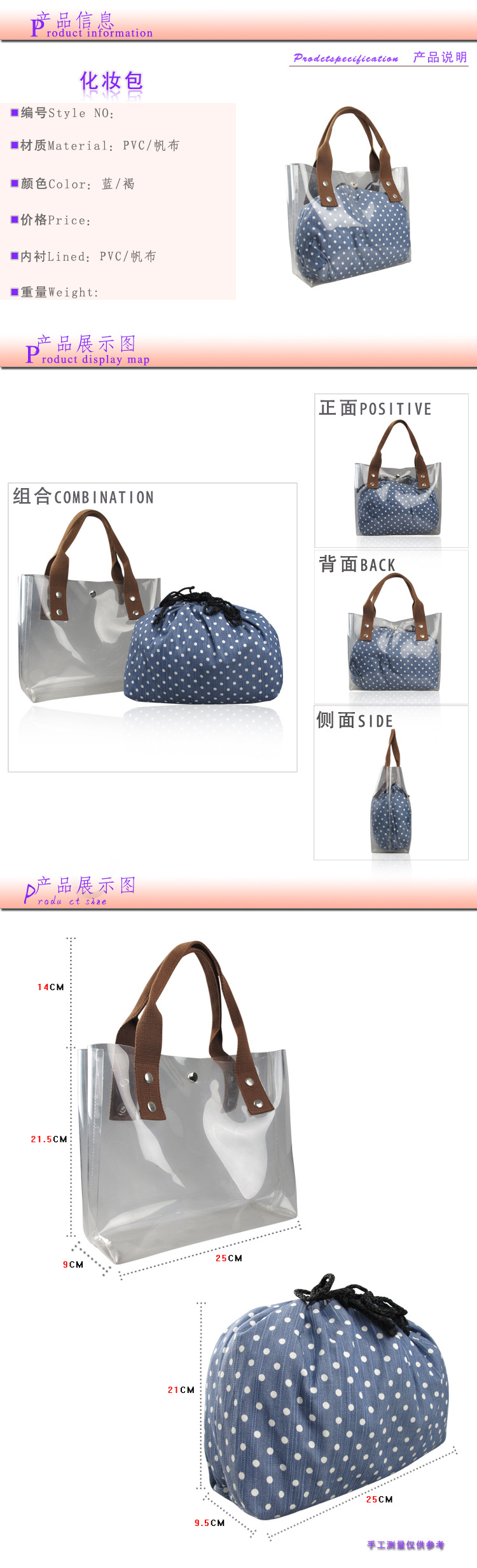 广东 批发 供应生产 PVC 帆布 蓝色带白点 手提 精美 时尚 化妆包