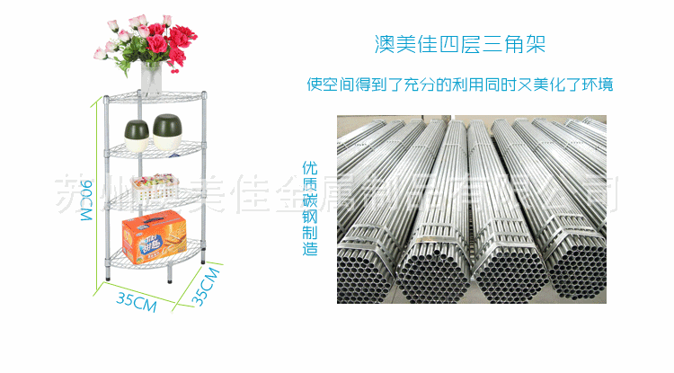 澳美佳MF036S 迷你四层扇形置物架 角落架 三脚架 盆栽架 花盆架