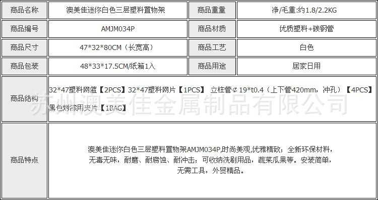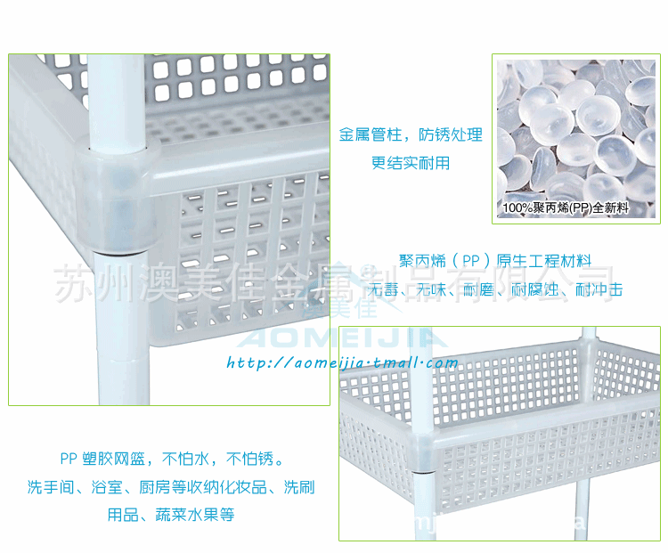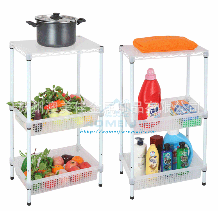 澳美佳AMJM034P 三层 塑料网篮架 蔬菜架 果蔬架 浴室架 整理架