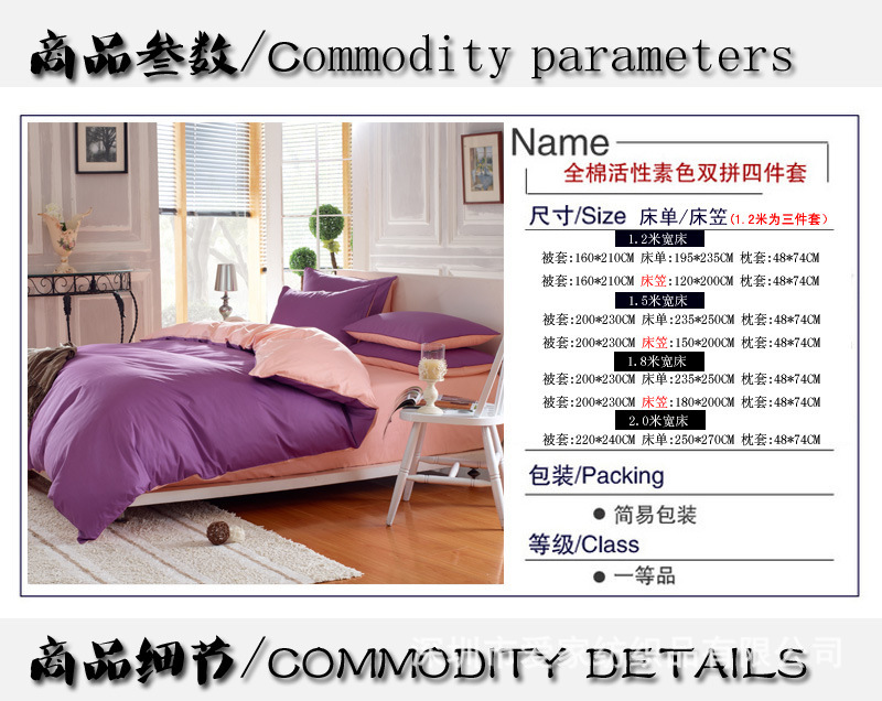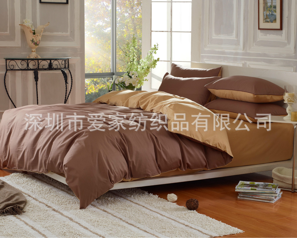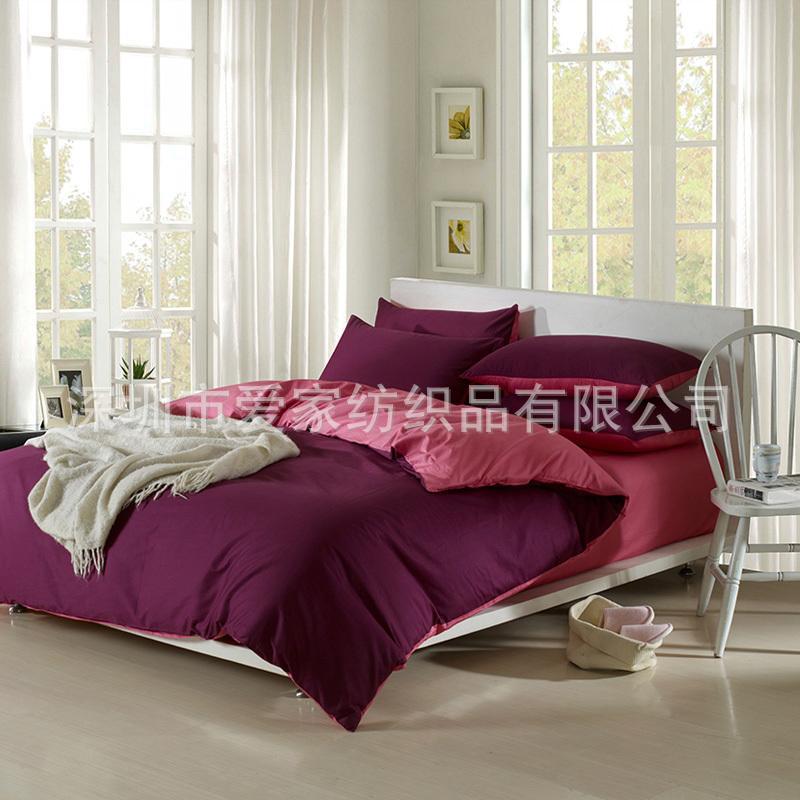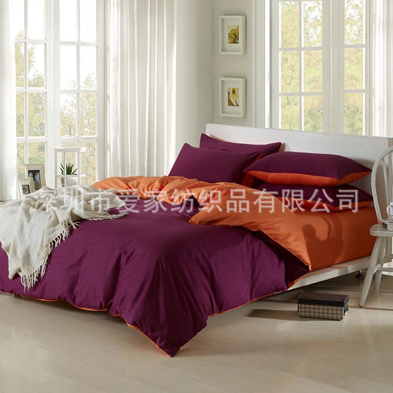 深圳床上用品批发纯棉素色双拼床上用品四件套