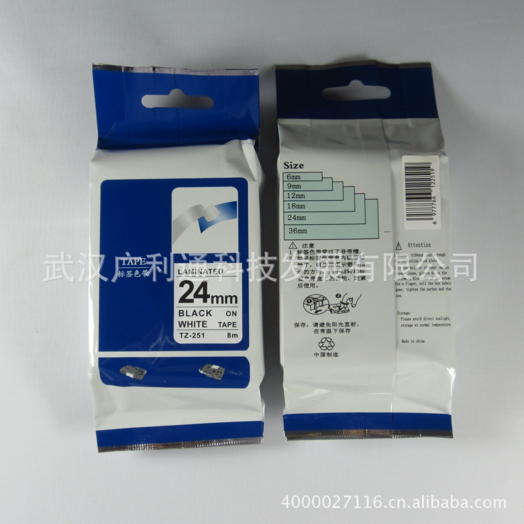 24mm兄弟国产三代标签,兄弟标签机PT-18RZ标签带TZ-251 白底黑字