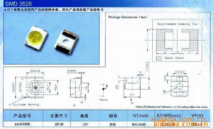3528贴片白光LED 贴片高亮发光二极管SMD