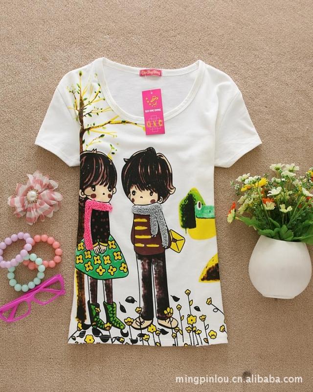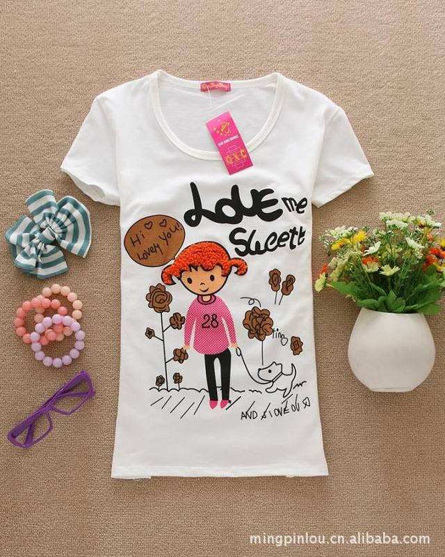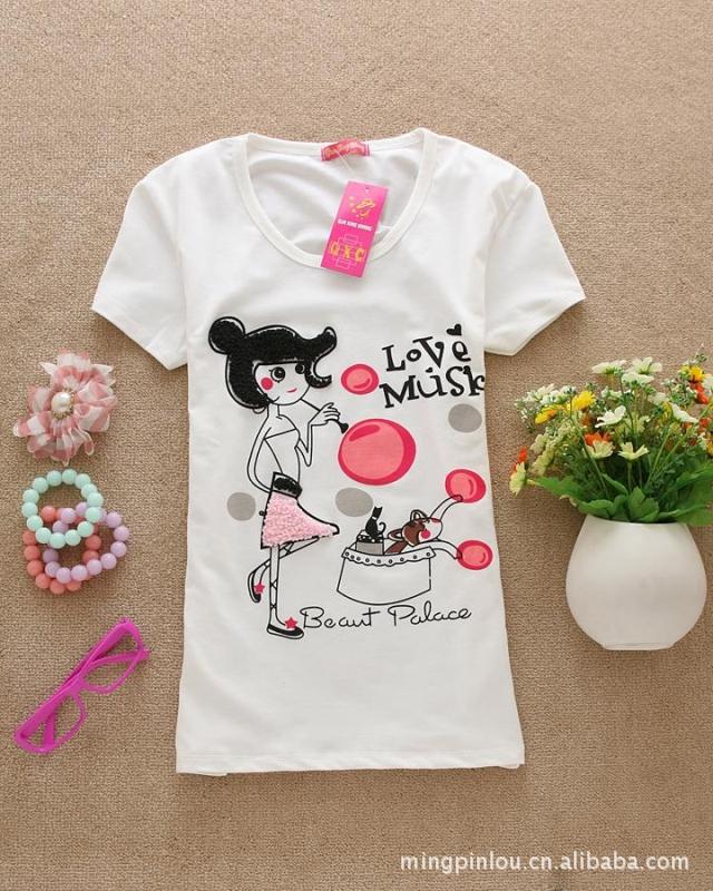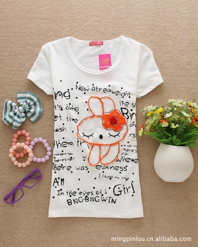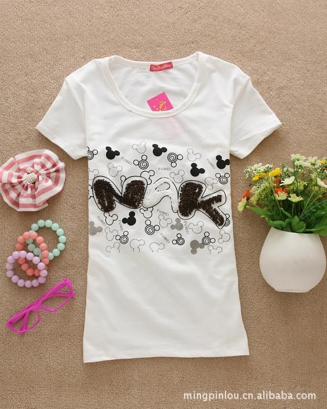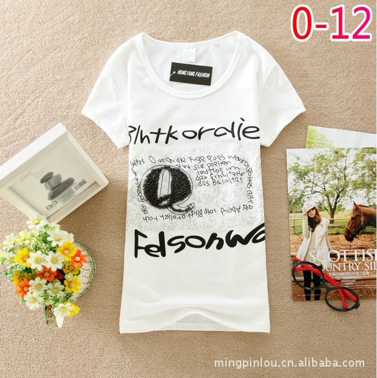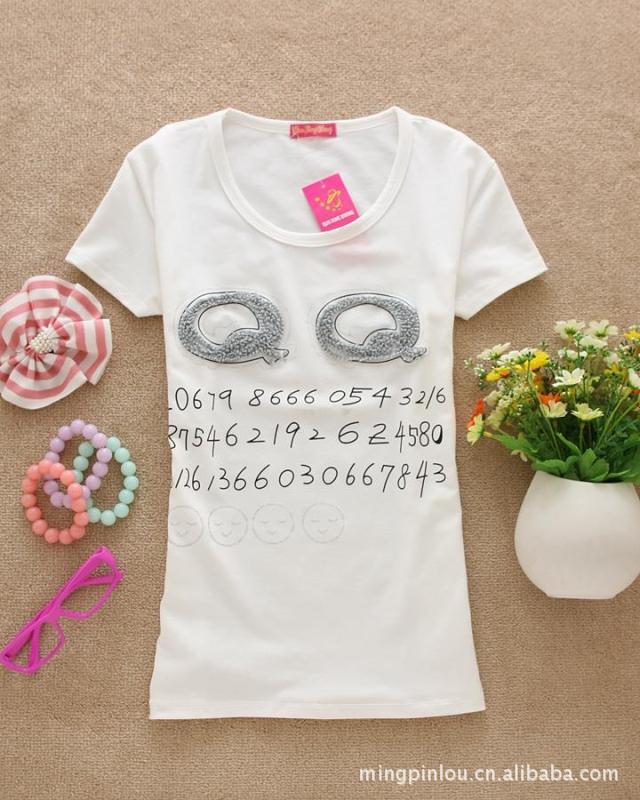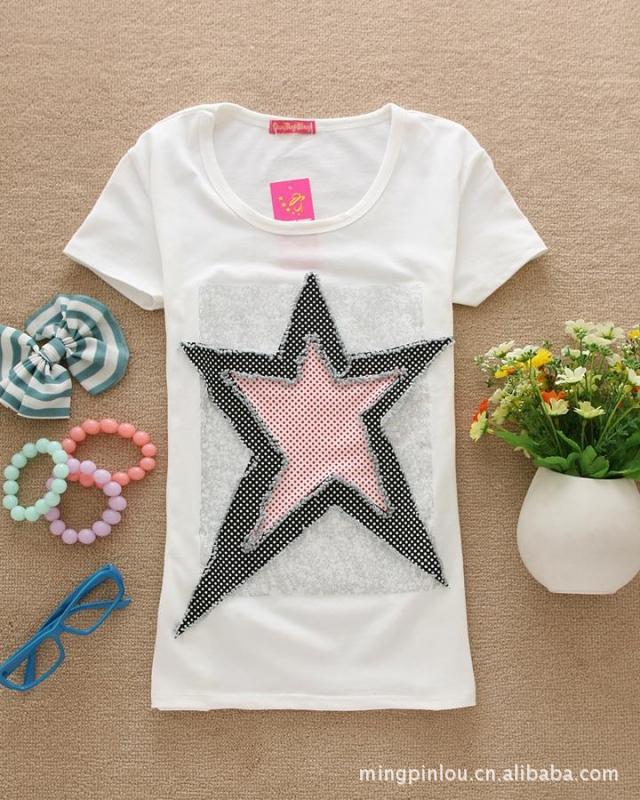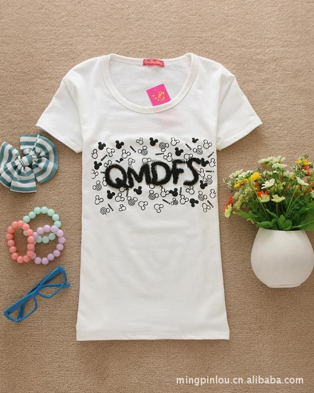 女式T恤批发 AF短袖钩花T恤衫批发 便宜T恤韩版女装批发