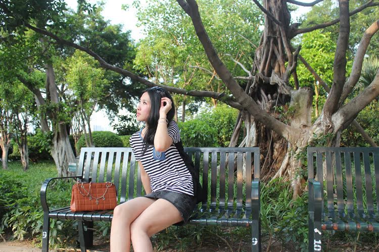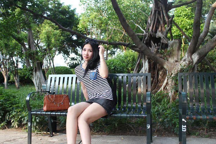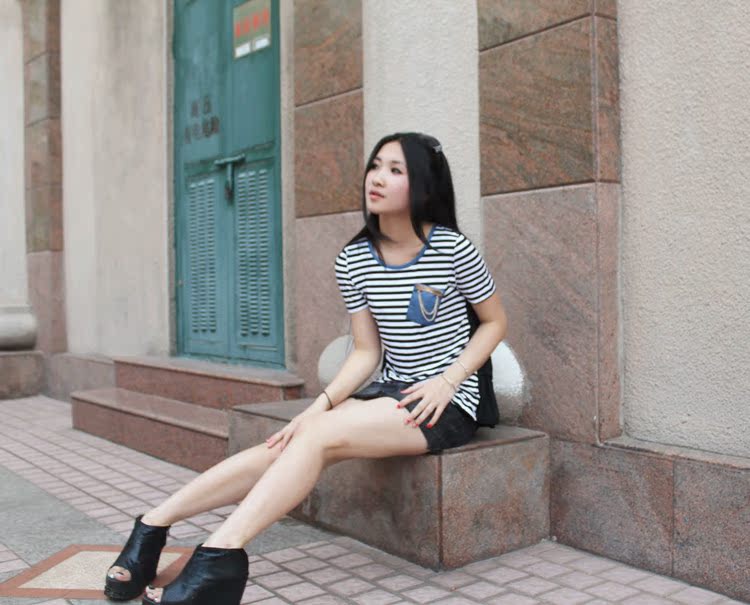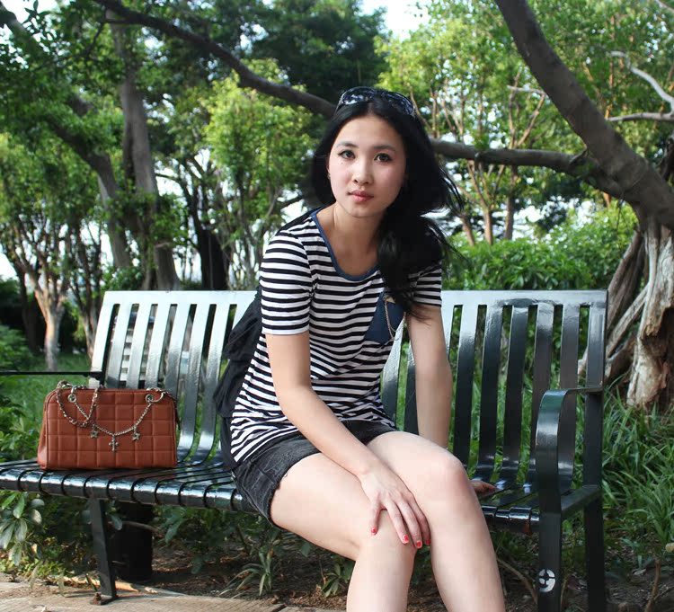 圣衣旺2012 新款 夏装 7月 条纹 时尚 短袖 宽松 T恤 雪纺短袖