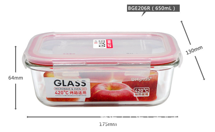 BK Plus Glass耐热玻璃保鲜盒650ml 方形 BGE206R