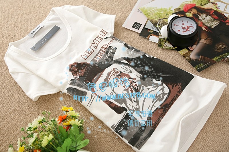 新品女装韩版水墨女士短袖T恤修身女式印花t恤夏季