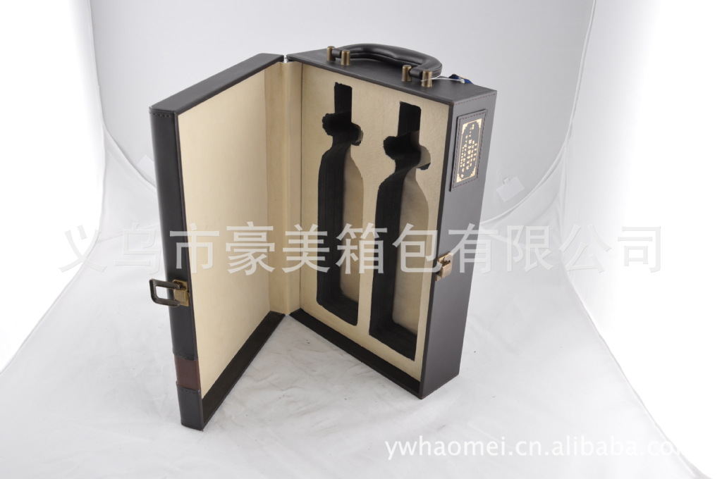 订制 豪美经典型 出口酒盒双只红酒皮盒包装盒 专业厂家直销