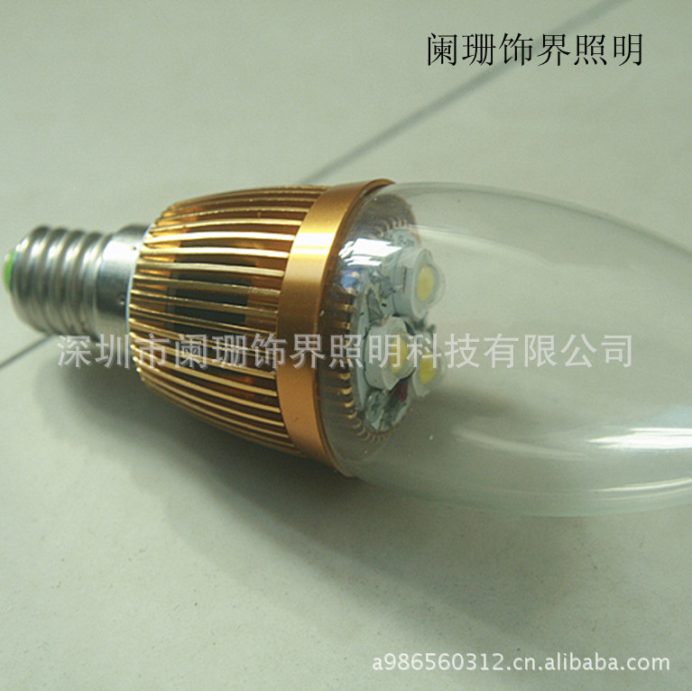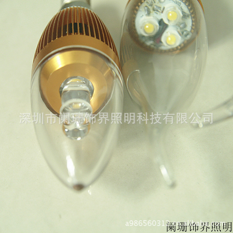 美凌水晶灯led灯泡节能蜡烛灯拉尾灯泡 小螺口E14尖泡光源超亮