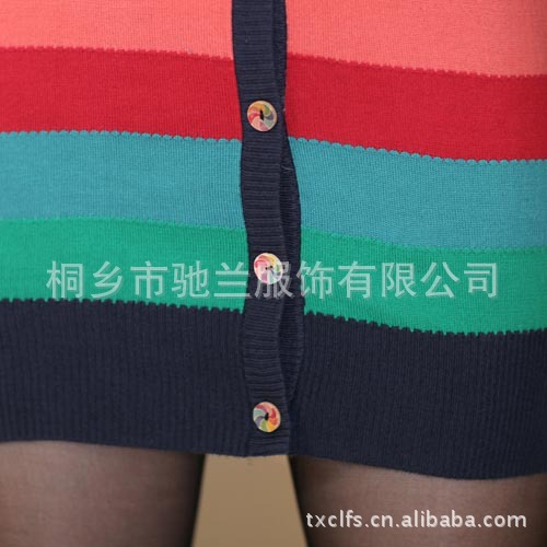 秋冬新款濮院女装针织衫批发条纹修身小开衫女式羊毛衫厂家直销