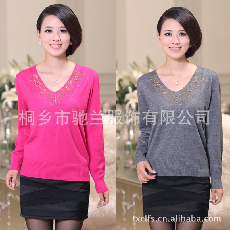 秋冬新款濮院女装针织衫批发烫钻妈妈装修身女式羊毛衫厂家直销