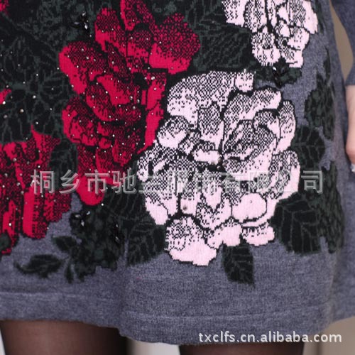 秋冬新款濮院女装针织衫批发圆领长袖玫瑰花女式羊毛衫厂家直销