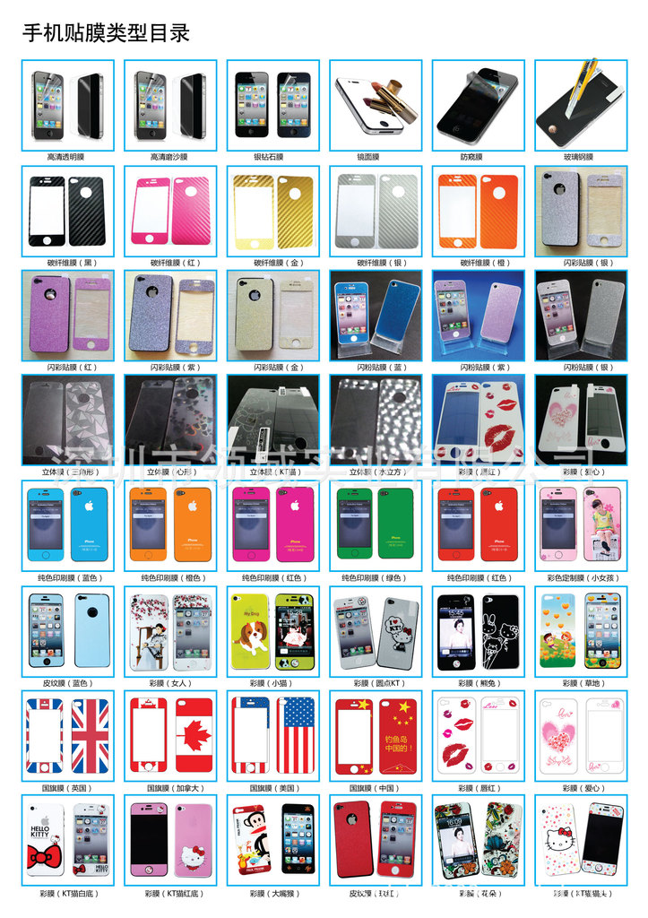 苹果iphone4S彩色贴膜 iphone4彩色手机贴膜 苹果彩色卡通膜印刷