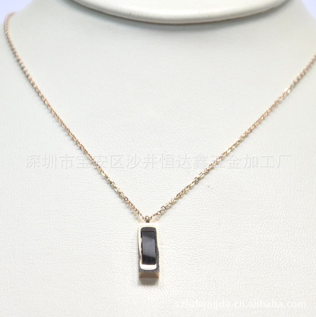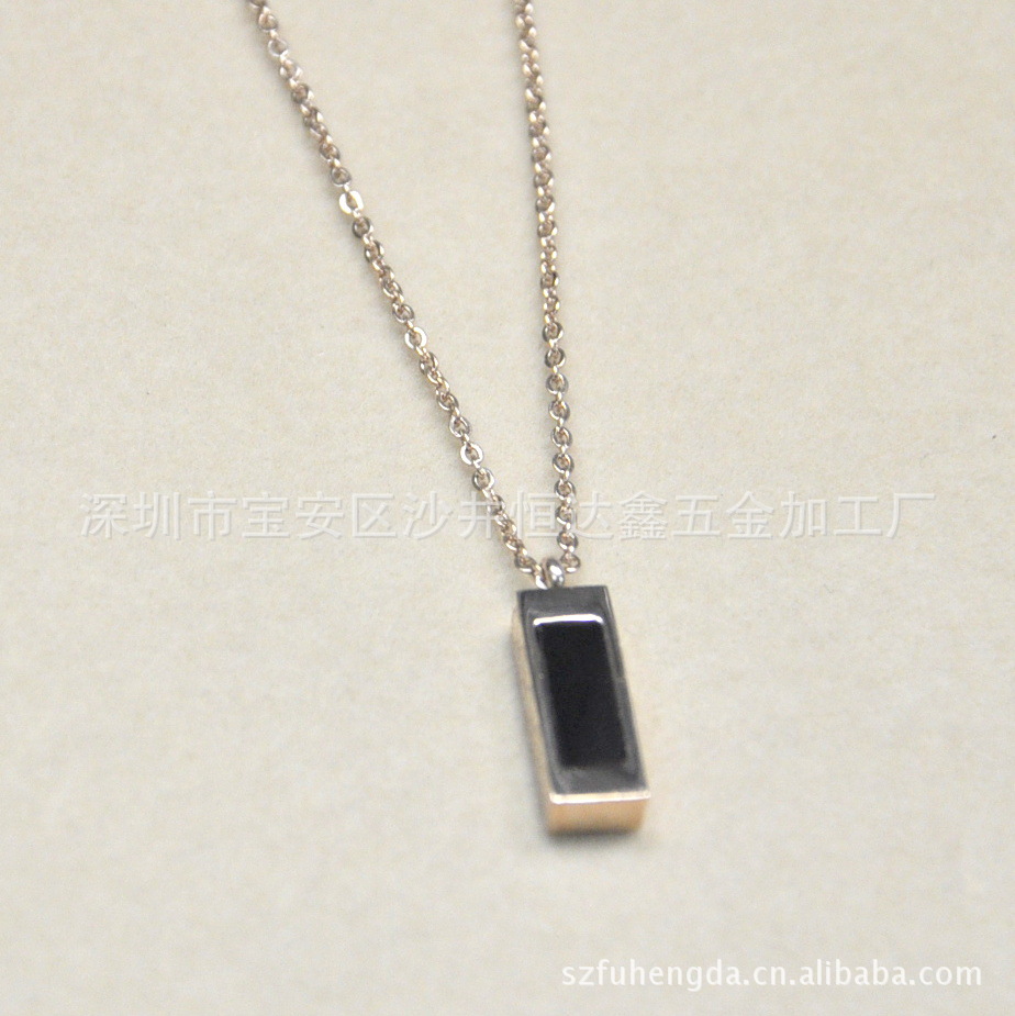 钛钢项链 不锈钢饰品批发 饰品厂家 韩式项链 方形黑玛瑙项链