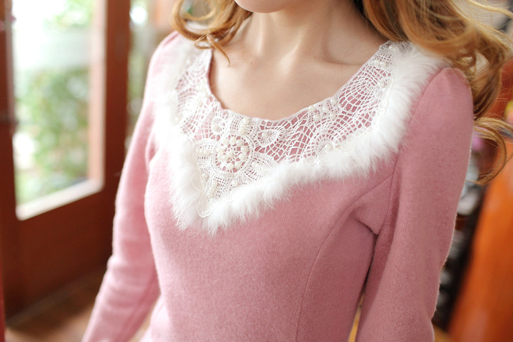 凡妮莎女装代理批发一件代发实拍HMHM1369拼接花边领口珍珠连衣裙