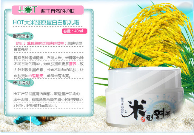 正品韩国HOT大米胶原蛋白白肌日乳霜/美白/抗辐射/化妆品