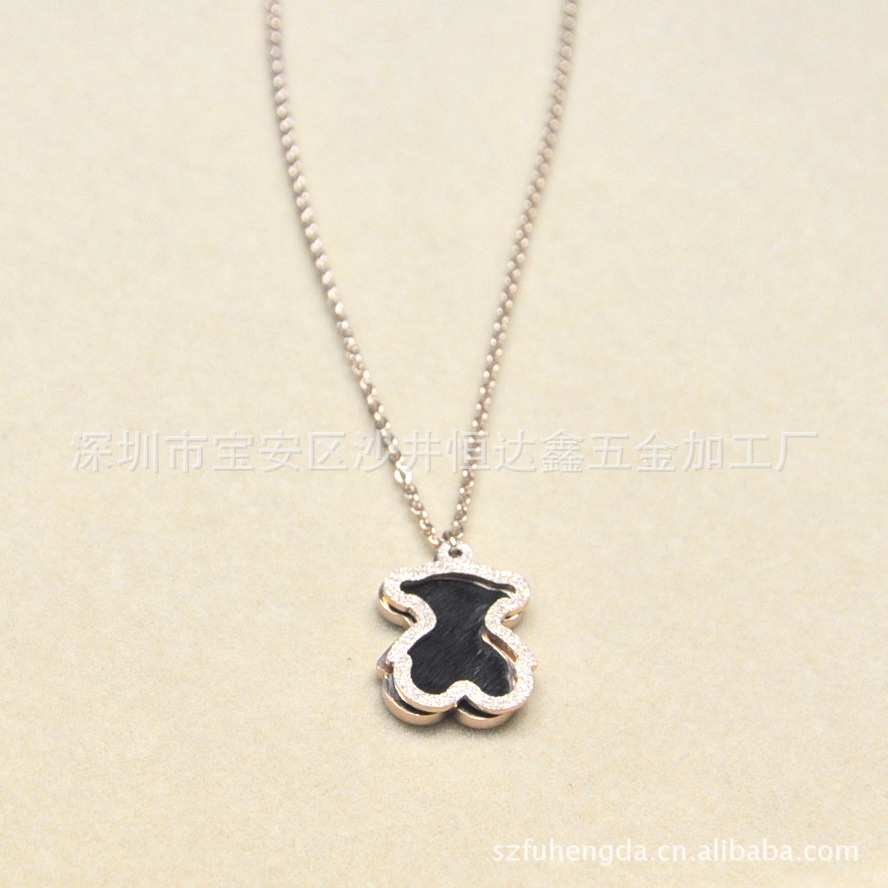 钛钢项链 不锈钢饰品批发 饰品厂家 韩式项链 双层黑底小熊项链