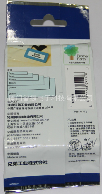 兄弟Brother 环保 标签机色带 TZe-641/651(黄底黑字) 18mm /24mm
