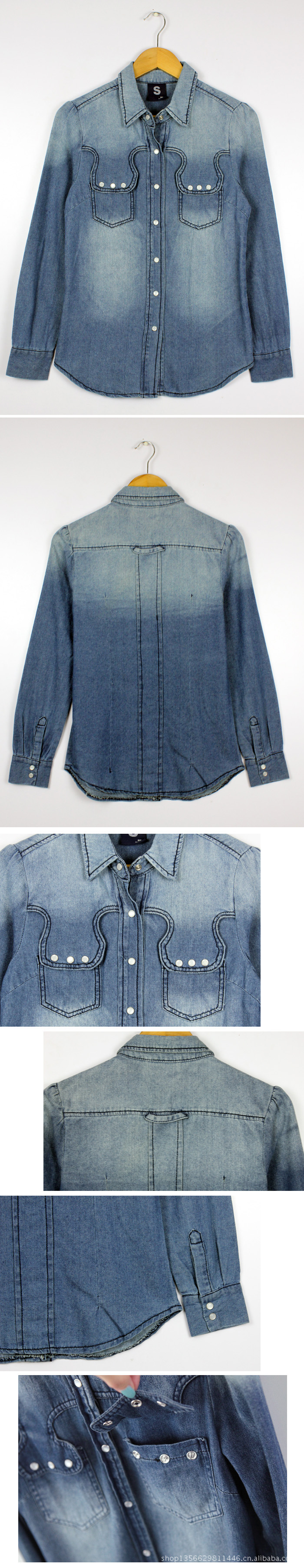 SSY韩版全棉百搭牛仔衬衣牛仔衫女牛仔外套T9271