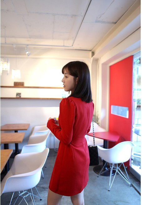 凡妮莎女装免费代理一件代发批发实拍HMHM1563韩版修身大红连衣裙