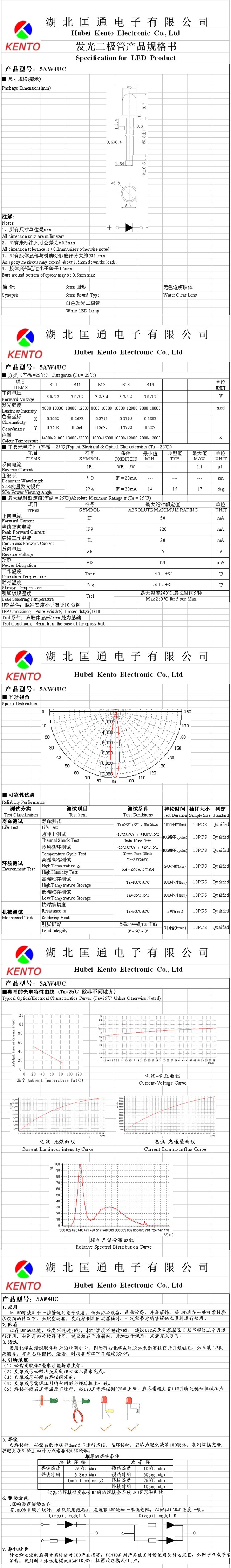 湖北匡通电子KENTO 优质正品 原厂直销5mm有边白发白高亮长脚