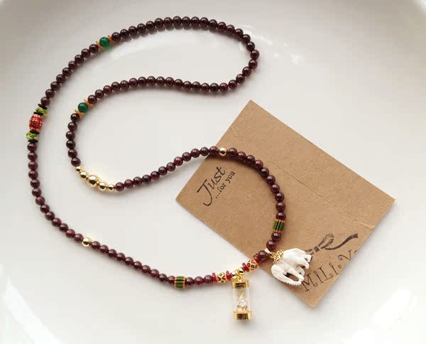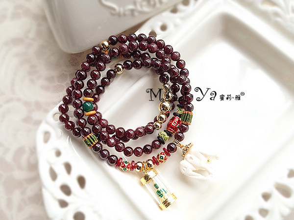 泰国象神 石榴石多层串珠手链 泰佛