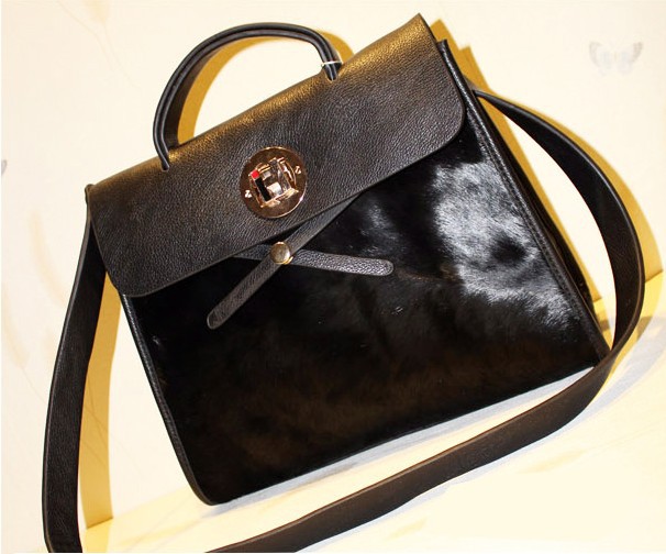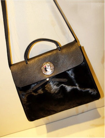 新款 潮袋欧美H扣超长毛真毛配PU交叉扣带斜挎包单肩包女