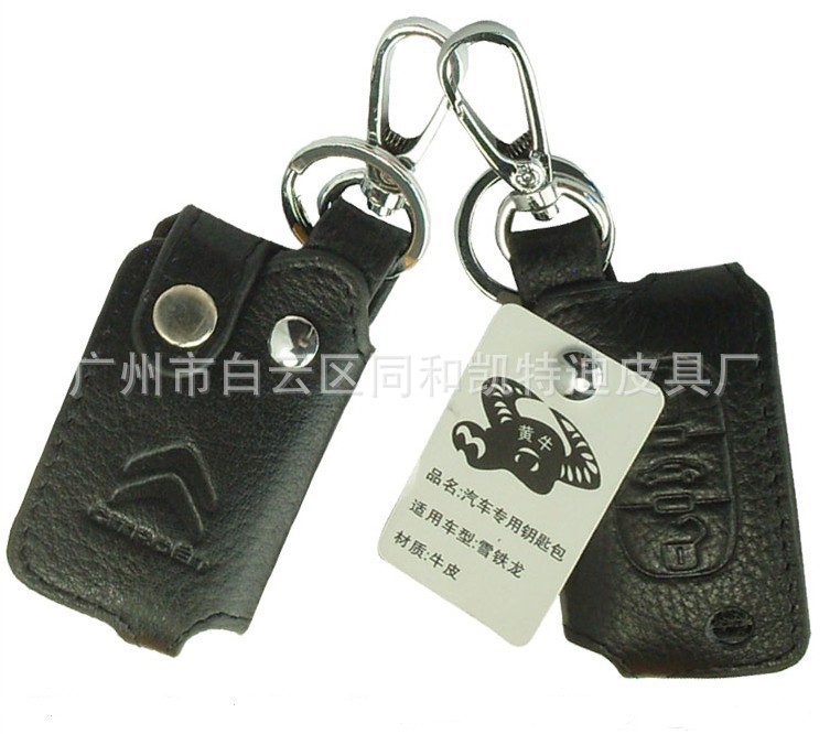 高档真皮车钥匙扣 商务黑钥匙包 厂商批发订做