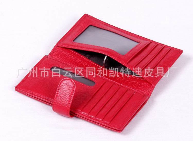 喜庆红色3折女士钱包 多卡位钱夹 票夹 真皮手拿包批发